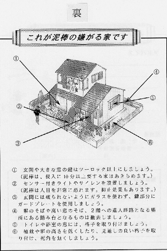 「これが泥棒の嫌がる家です」として泥棒が入りにくい家のポイントを6項目あげ、イラストを交え注意を促しています。