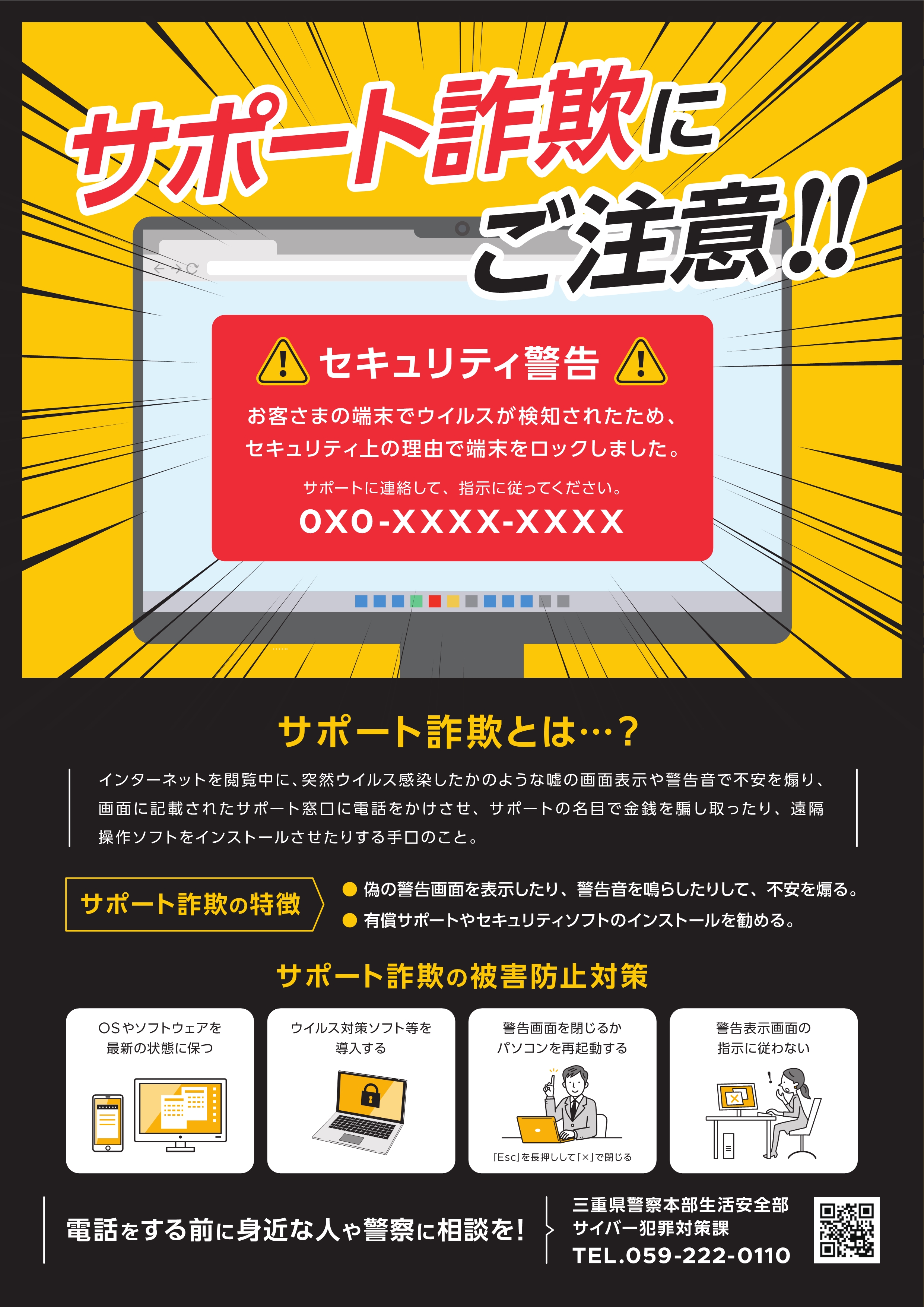 三重県警察サイバー防犯ボランティア制作の動画(サポート詐欺に注意!)