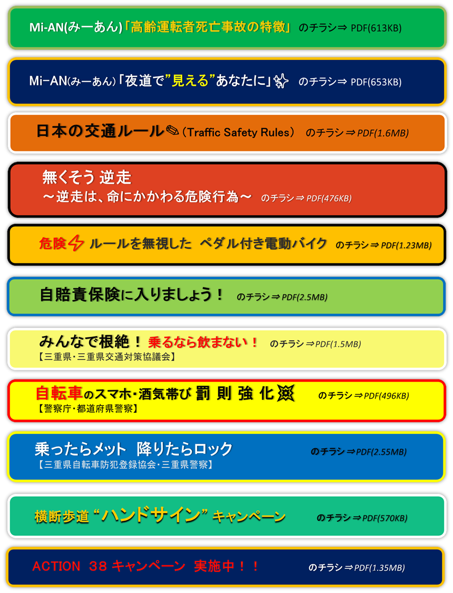 | ・三重の交通事故(PDF) | |||||||||||||||||||||||||||||||||||||||