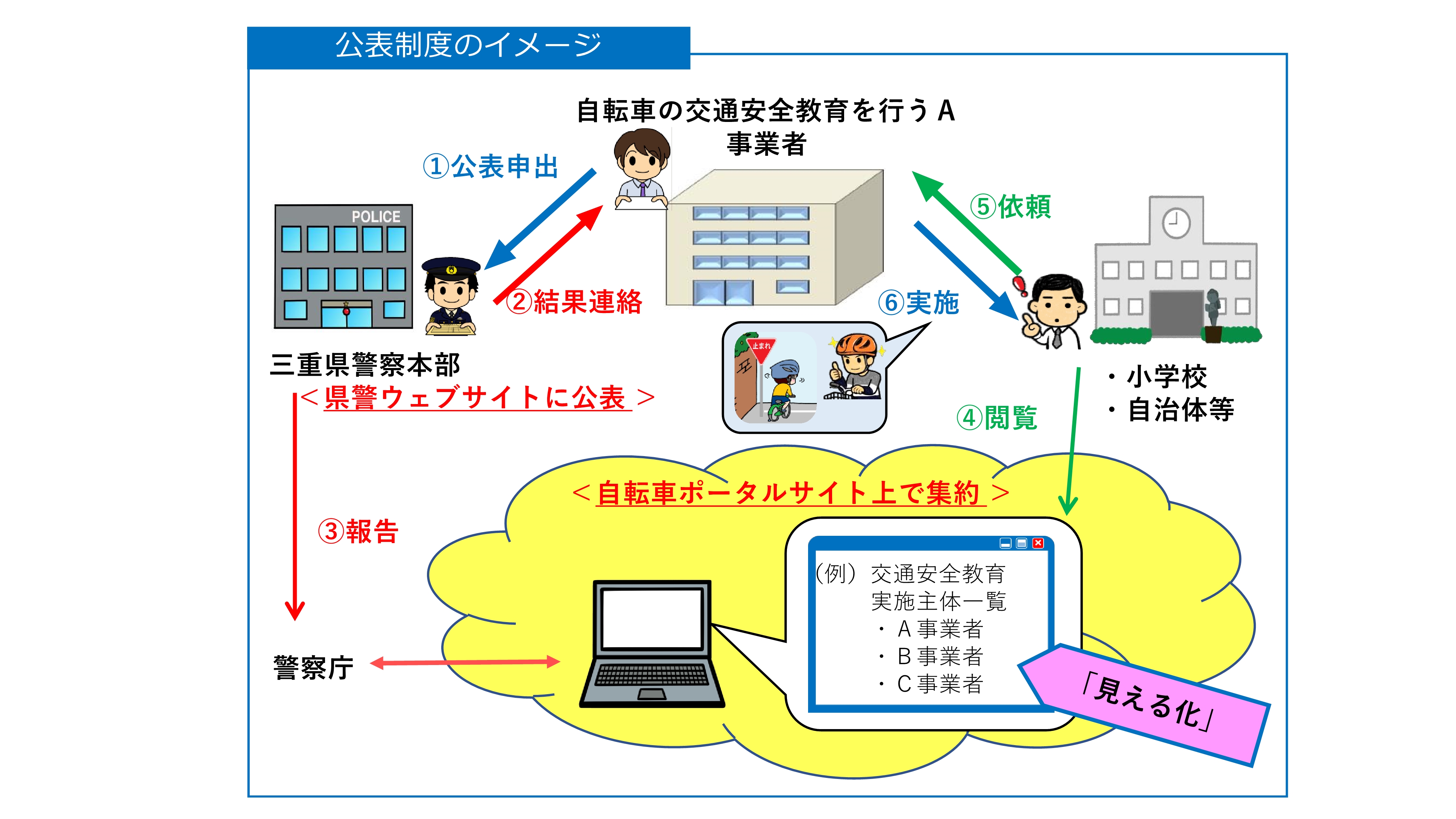 1 概要「自転車の交通安全教育実施事業者公表制度」は、専門的な知見を有する自転車の交通安全教育実施事業者を、警察において公表する制度です。