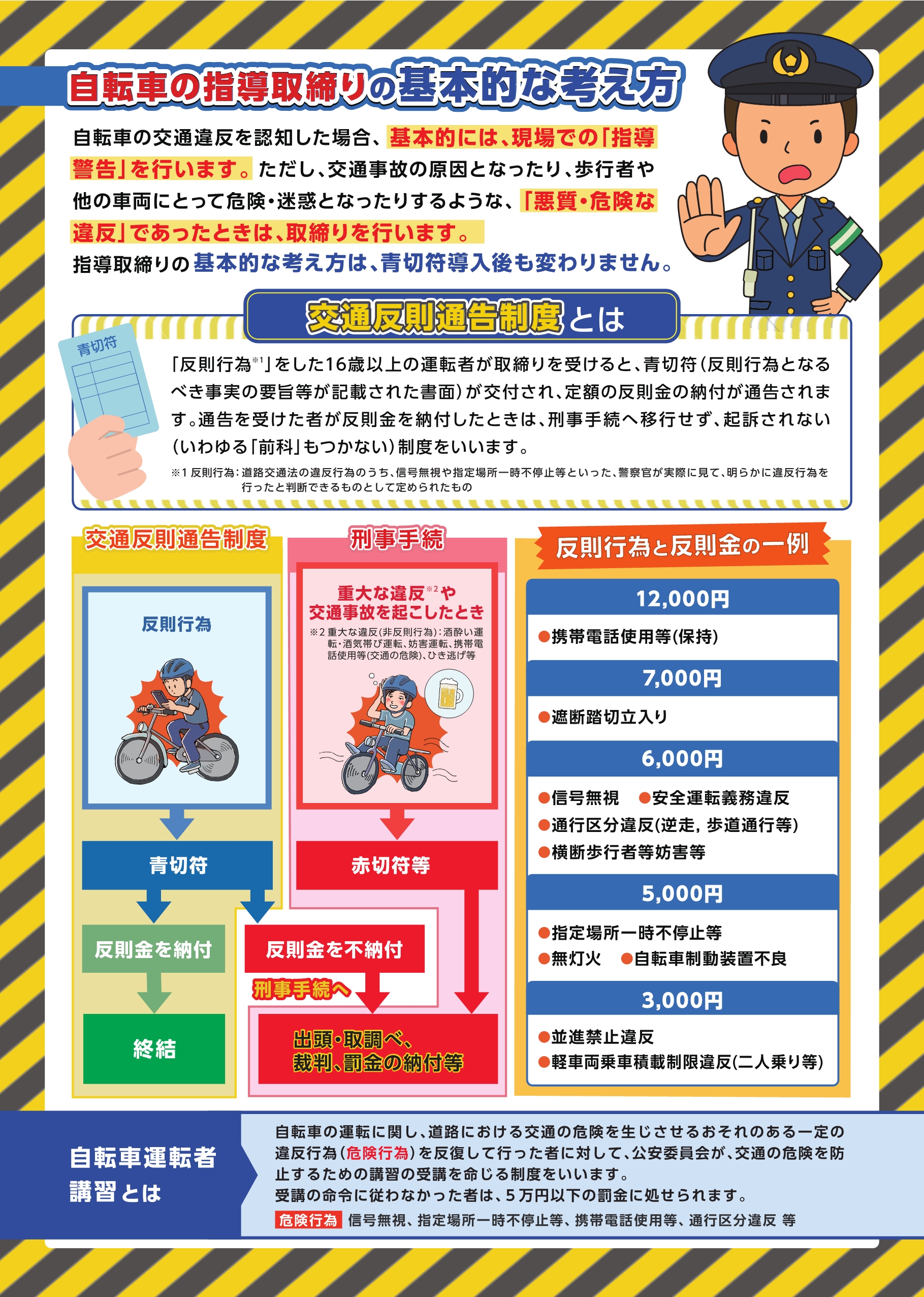 自転車の指導取締りの基本的な考え方と交通反則通告制度について